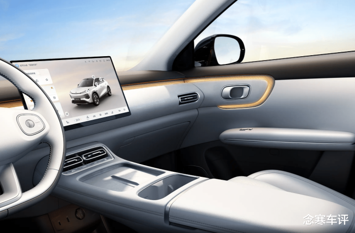 内饰这块的话,还是有挺大变化,尤其是那块15.6英寸的大屏,配的是4纳米芯片,还有24G运存,硬件给得是真的足。